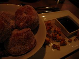 Sadly, the donuts were a disappointment, tasty enough but undercooked in the middle and sort of overwhelmingly doughy. But the unbilled "garnish" -- a copious spill of caramel corn -- more than made up for it, being rich, buttery, crunchy, salty & sweet, and a total knockout when dipped into the hot fudge sauce that came with the donuts.